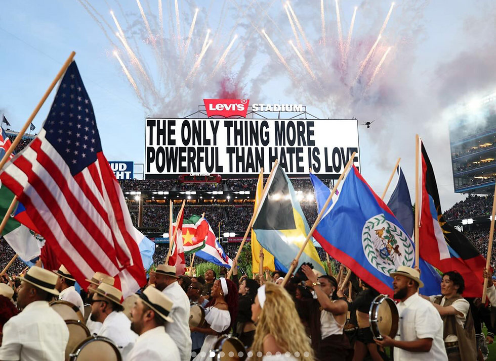 It’s no secret that art has always been a mode of protest, and within the last few years of Trump’s run in America, things have gotten back to getting spicy on the field. It’s always been a common theme amongst these intermissions to the games, with performances like Michael Jackson’s 1993 halftime show to note. But what made this year different is that politicians fought back both proactively and following the games. By featuring symbols like the light blue Puerto Rican flag (associated with independence) and "ICE out" rhetoric, the performance tapped into a widespread public "horror and disgust" regarding immigration tactics, which some analysts believe could lead to a realignment in U.S. politics. This was met with a call from the House Republicans on the Federal Communications Commission to investigate Bad Bunny's Super Bowl halftime performance, suggesting the content and lyrics of the Puerto Rican star's show were "illegal.” If I’m not mistaken, it seems as though they were already holding grudges about invisible competition with pointless battle of the bands framing. Turns out America is in need of a Grammy-winning tune about family over a lip sync performance by Kid Rock that would’ve gotten him voted off this season of Rupaul’s Drag Race faster than DD Fuego (RIP </3).